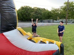 - OCCUPANCY: A maximum of 5-6 kids of equal size at one time for bounce houses, and 1 person at a time for slides is what most inflatable manufacturers recommend.